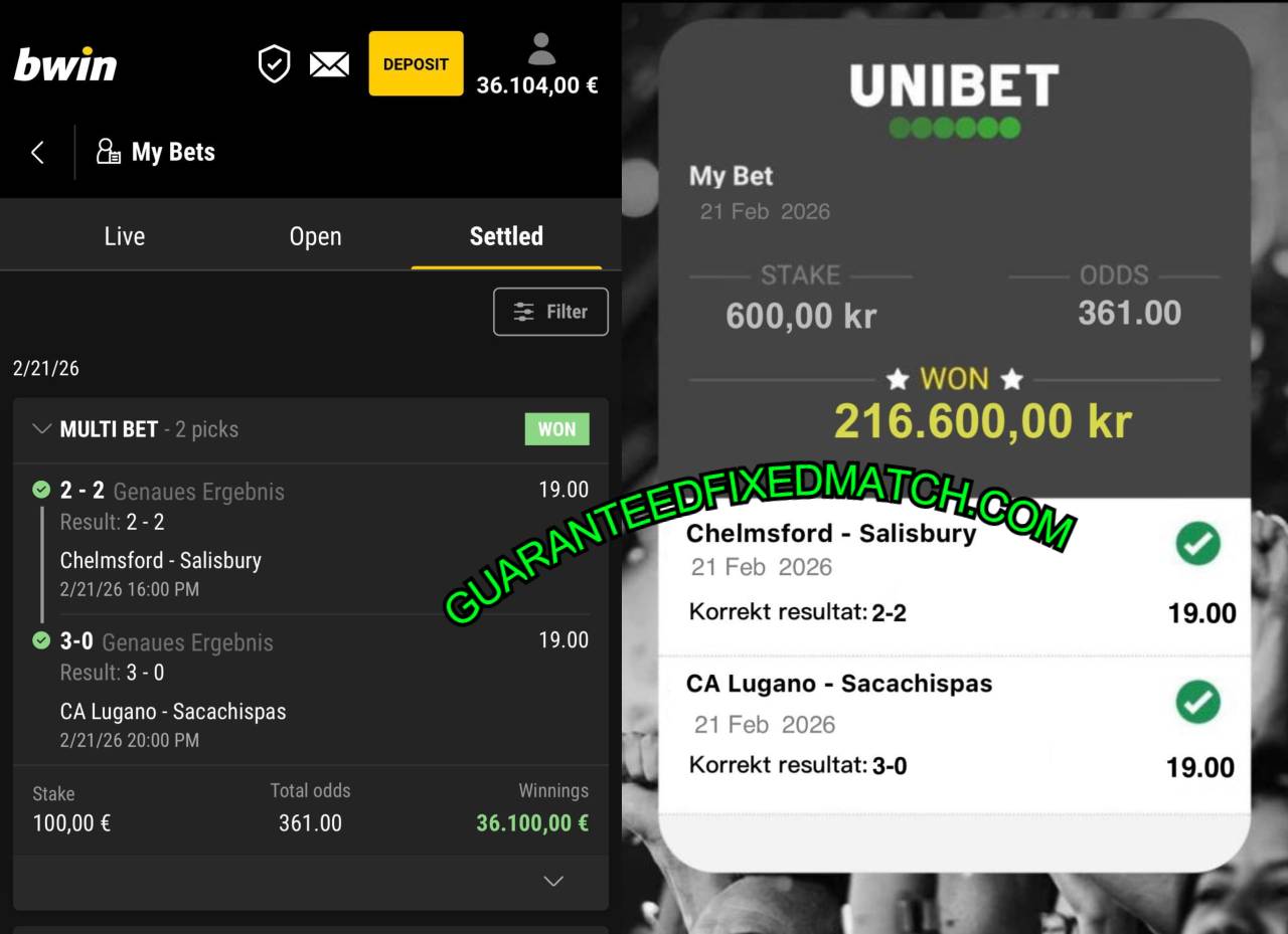 CORRECT SCORE FIXED MATCHES OUTCOME FROM DATE: 21/02/2026 WON