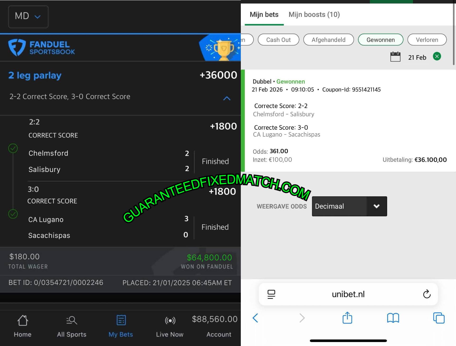 Looking for to purchase Correct Score Fixed Matches? Our trusted and verified source from the Guaranteed Fixed Match delivers 100% accurate Exact Score Fixed Betting Tips. When it comes to winning, we ensure a safe and guaranteed success rate (100 percent sure win).
