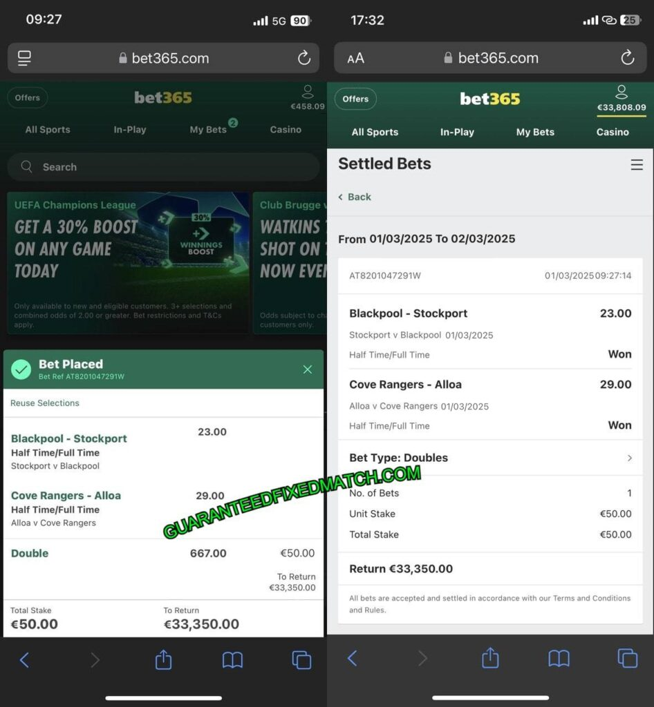 Take control of your future and maximize your profits today! While we are offering two fixed matches (HALFTIME FULLTIME FIXED MATCH) with odds up to 900, but guaranteed safe and reliable, sourced from verified underground channels.