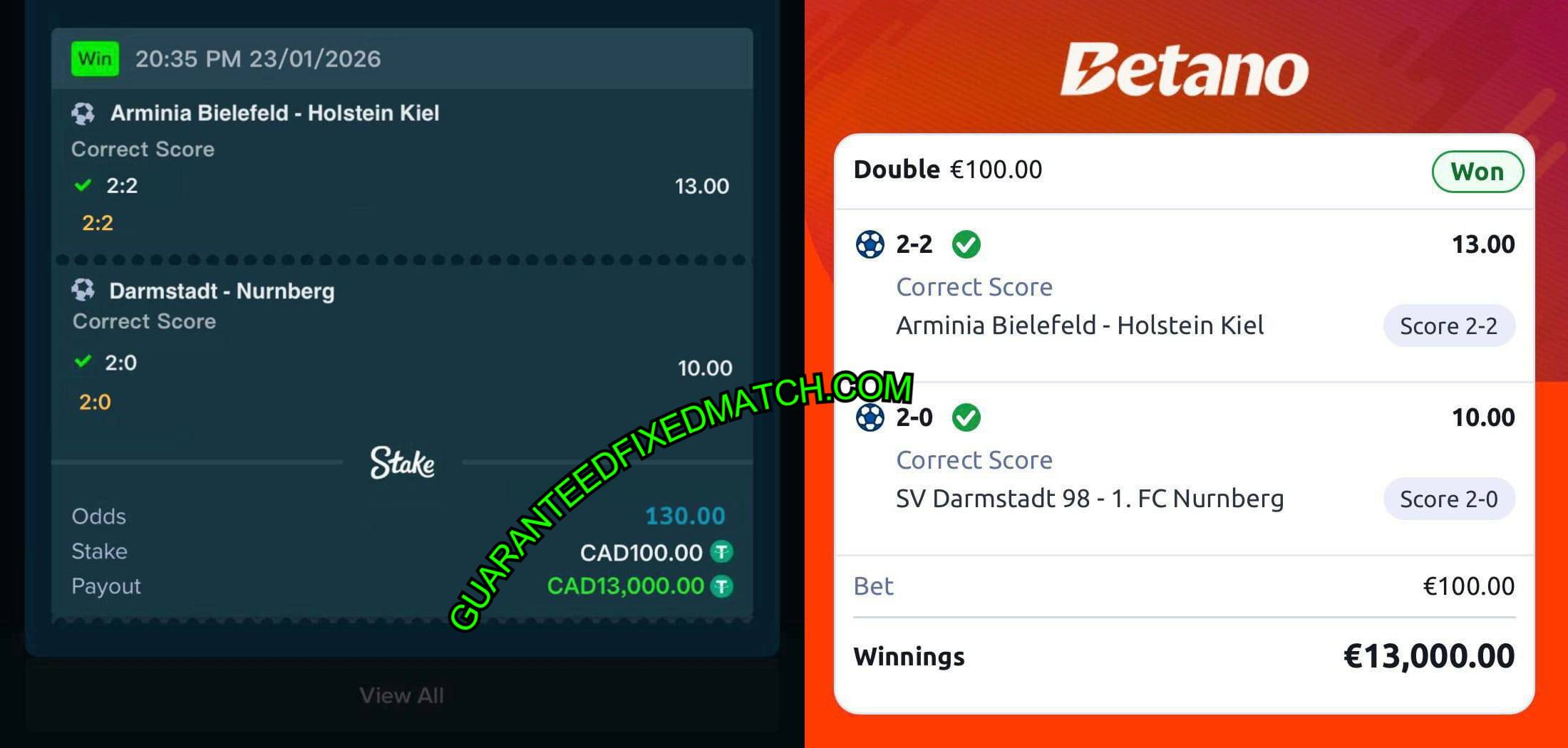 | Arminia Bielefeld vs Holstein Kiel | 2:2 (CS) | 13.00 | FULLTIME: 2:2 WIN |