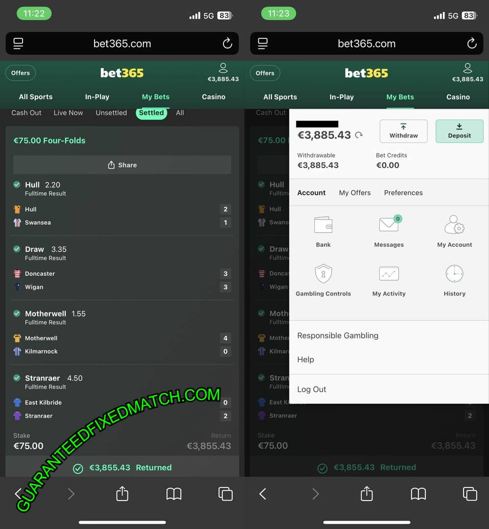 Looking for guaranteed Correct Score Fixed Matches? Our trusted and verified source from the Guaranteed Fixed Match delivers 100% accurate Exact Score Fixed Betting Tips. When it comes to winning, we ensure a safe and guaranteed success rate. Our offerings at Guaranteed Fixed Matches include two specialized types of predictions: halftime / fulltime fixed matches results and precise correct score fixed games outcomes. Firstly, Guaranteed Fixed match are essentially rigged games where the outcome is pre-determined by dishonest individuals, typically for the purpose of illegal gambling.